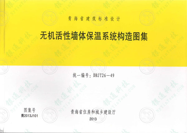 青海省建筑標(biāo)準(zhǔn)設(shè)計(jì) 《無(wú)機(jī)活性墻體保溫系統(tǒng)構(gòu)造圖集》統(tǒng)一編號(hào):DBJT26-49 圖集號(hào):青2013J101 青海省住房和城鄉(xiāng)建設(shè)廳