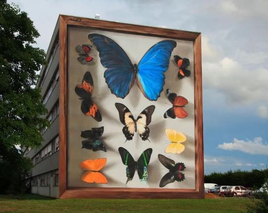 透過在世界各地建筑外墻上繪制大型蝴蝶標(biāo)本,由此來提醒大眾,近幾十年來蝴蝶數(shù)量持續(xù)減少中,這是我們?nèi)祟惒坏貌恢匾暤膯栴}。