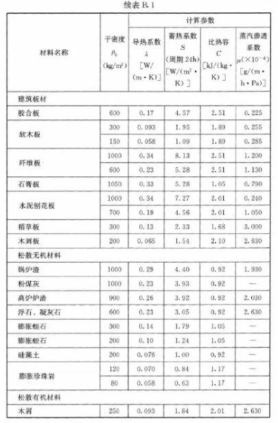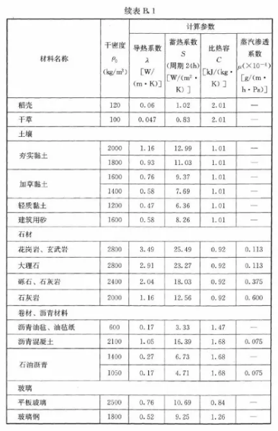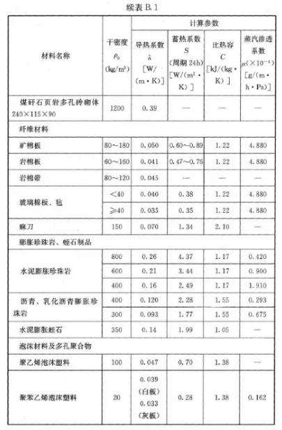 —— 附表 GB 50176-2012中對(duì)保溫材料的熱工參數(shù) ——