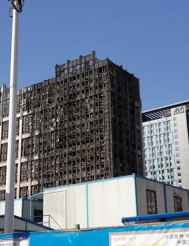 圖四、鄭州綠地原盛國(guó)際辦公樓著火后熱塑性擠塑板灰飛煙滅