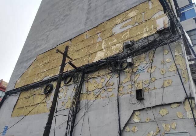 圖九、沈河區(qū)大南街道一處既有建筑改造外墻,這種質(zhì)量的外墻比比皆是,非常有安全隱患。