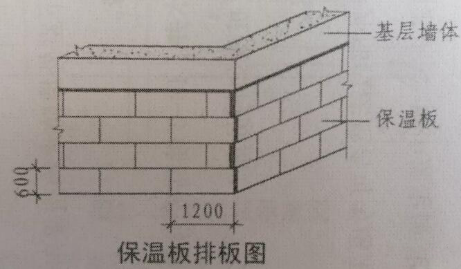 3、保溫板自下向上沿水平方向鋪貼,每排板錯(cuò)縫1/2板長,角部保溫板交錯(cuò)設(shè)置。