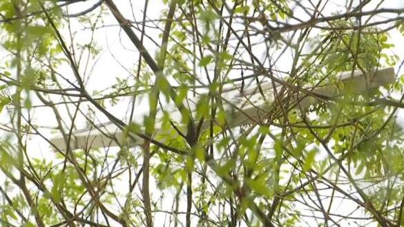 在旁邊的樹上,也掛著一片從樓頂?shù)袈涞谋貙铀槠鈮ι线粘連著即將脫落的保溫層,如果再次發(fā)生脫落事故,將對居民出行構(gòu)成危險。