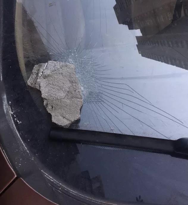 △脫落瓷磚砸中擋風(fēng)玻璃