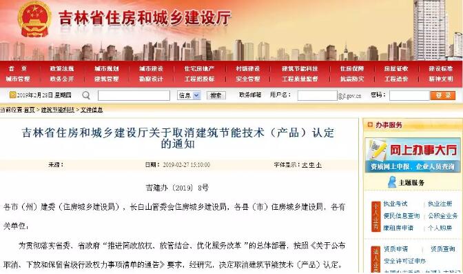 吉林省住房和城鄉(xiāng)建設(shè)廳關(guān)于取消建筑節(jié)能技術(shù)(產(chǎn)品)認(rèn)定的通知