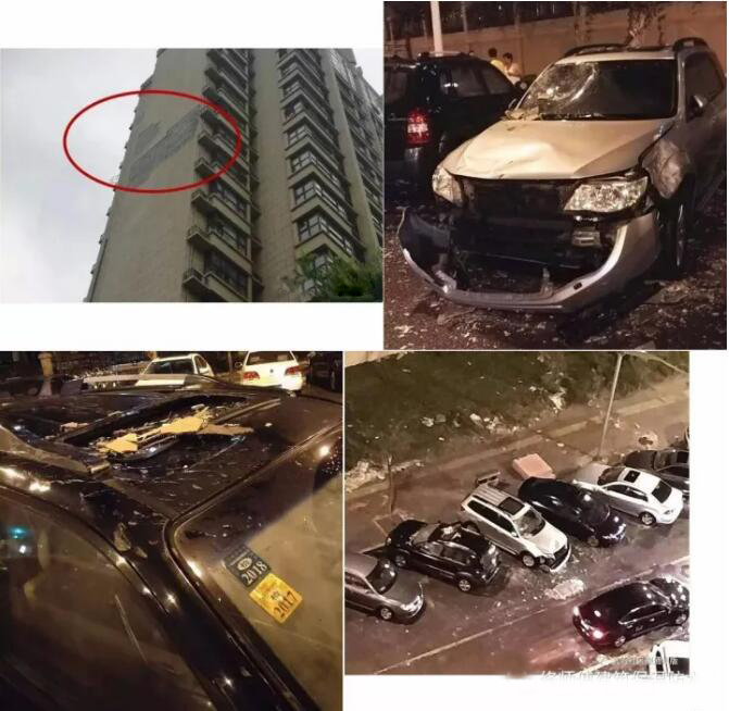 這讓我想起一個非常典型的例子,之前《北青網(wǎng)》有爆料“通州某高檔小區(qū)發(fā)生外墻皮脫落砸中轎車事件,停在樓下的多輛轎車遭殃,被砸轎車面目全非,所幸未造成人員傷亡..”