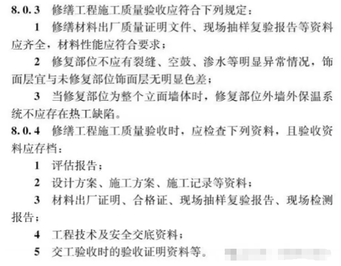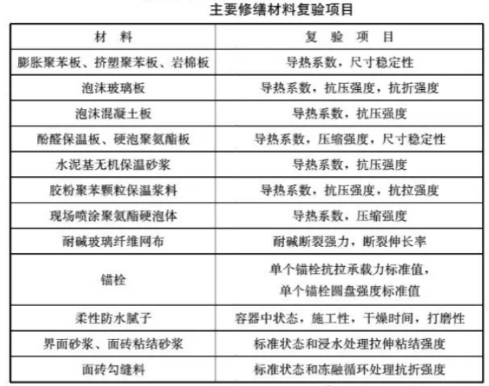 當(dāng)修復(fù)的是整個(gè)立面的外墻外保溫時(shí),驗(yàn)收內(nèi)容如下: