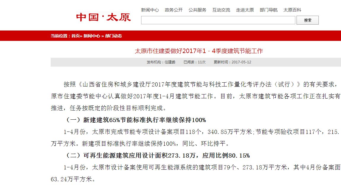 按照《山西省住房和城鄉(xiāng)建設(shè)廳2017年度建筑節(jié)能與科技工作量化考評辦法(試行)》的有關(guān)要求,太原市住建委節(jié)能中心認真做好2017年度1-4月建筑節(jié)能工作。目前,太原市建筑節(jié)能各項工作正在扎實有序推進,任務(wù)按既定的階段性目標順利完成。